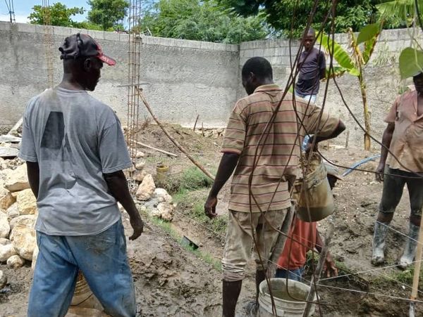 Because of your generosity, Level 1 is complete. Cement, rocks, gravel, and structural columns are now in place — the first steps toward laying the foundation.